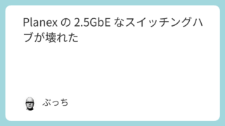 Planex の 2.5GbE なスイッチングハブが壊れた 朝起きてスマホをみたら、スケジュールのデータがサーバーとの通信に失敗して同期できないとエラーが。おかしいな…… サーバー何かあったのかなと、このブログを開いたら通信エラー。なにか大変な事なったぞと。... 2026.02.06 - 19:13 Diary