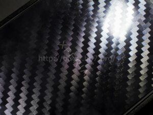 透明なフィルムなんだけど、エンボス加工みたいな物でカーボン調な見た目に変化するフィルムだ。ただフィルムを貼るだけじゃ面白く無いから、ちょっと変わった物を選んでみた。
