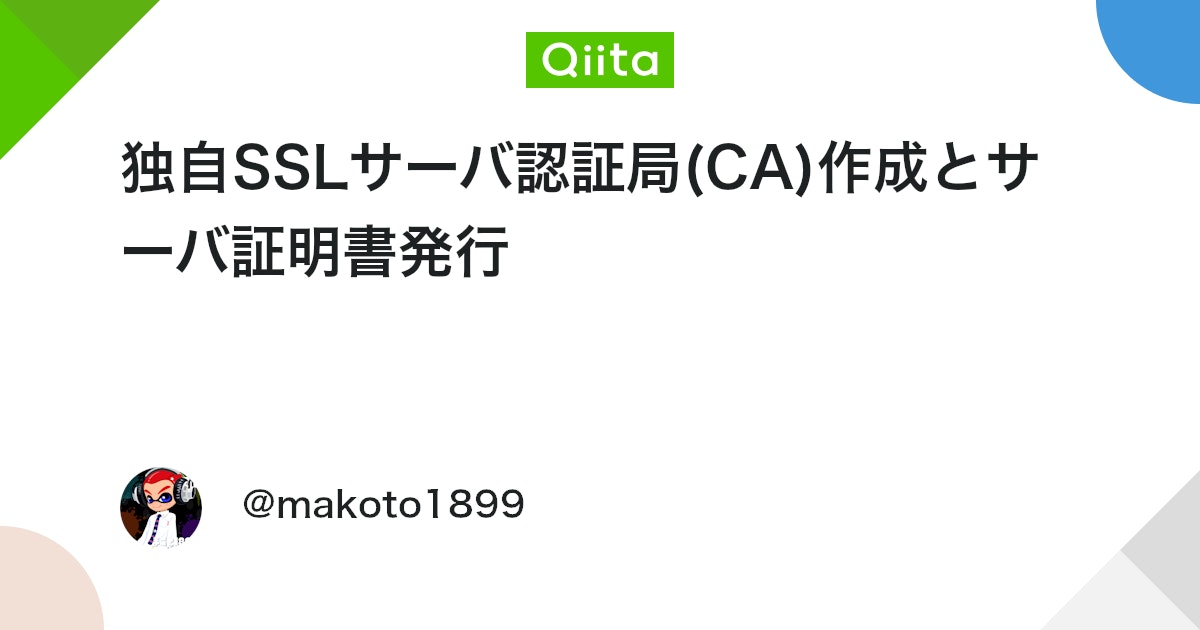 ローカル内部のみで SSL を用いた通信を行うとき、自己認証局でサーバー証明書を発行できると面白い。しかし、認証局を作ったり署名要求証明書を発行して認証局に署名させて、サーバー証明書を発行する等と言う手順がややこしくていつも頭を抱えていた。