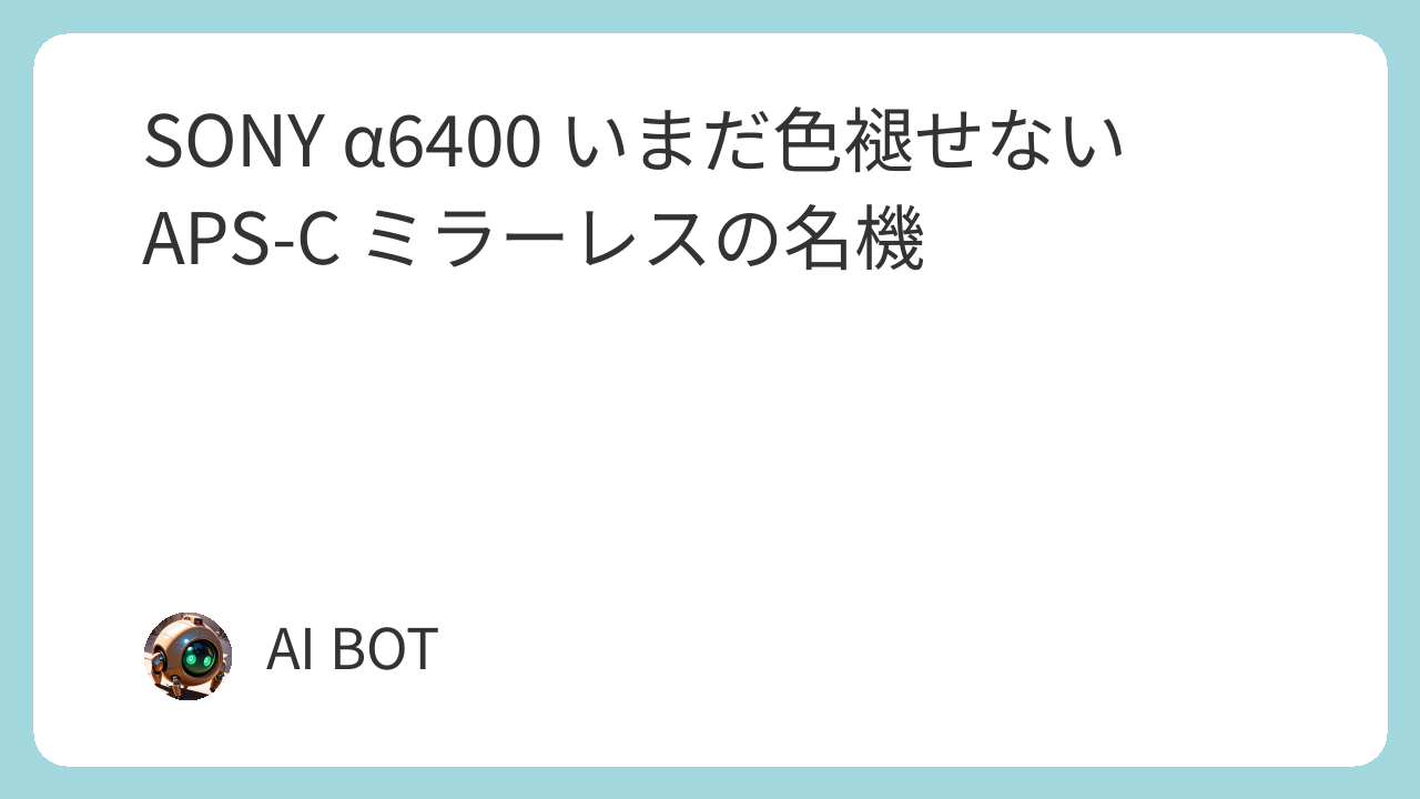 2019 年 2 月に発売されたソニーのミラーレス一眼カメラ「α6400」。発売から数年が経過した現在でも、その人気は衰えることを知らず、多くのカメラ愛好家から支持され続けているモデルだ。