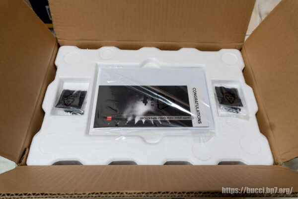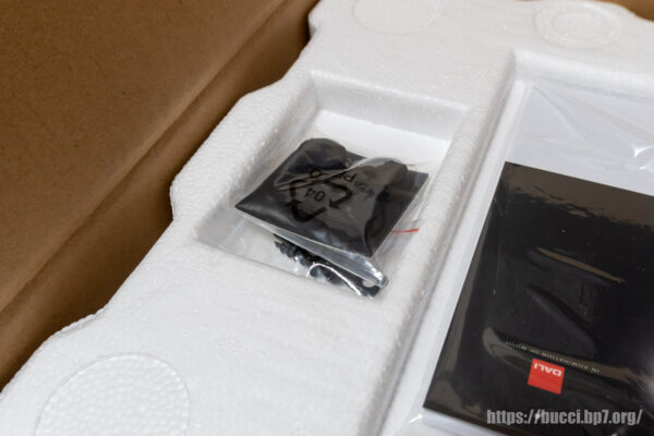 箱を開けて先ず見えてくるのは取説とゴム足に壁掛けキット。