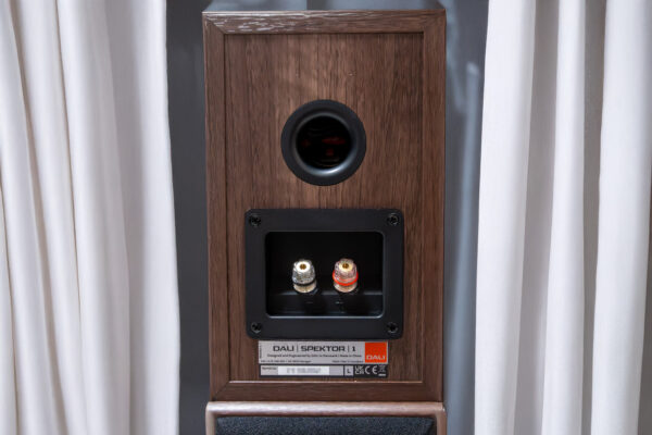 背面。重低音域の為にしっかりとバスレフが空いている。
