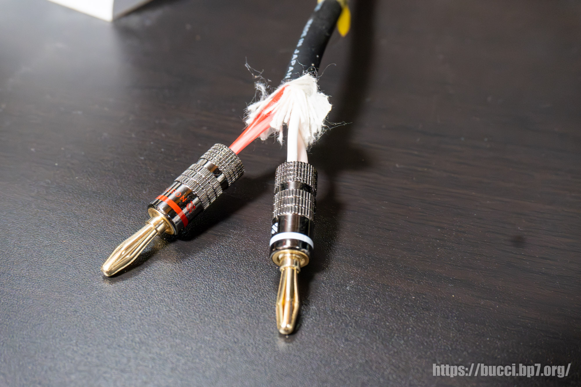もう片方のアンプとの接続部分は既にバナナプラグにしてあるので、今回はスピーカー側だけで済む。