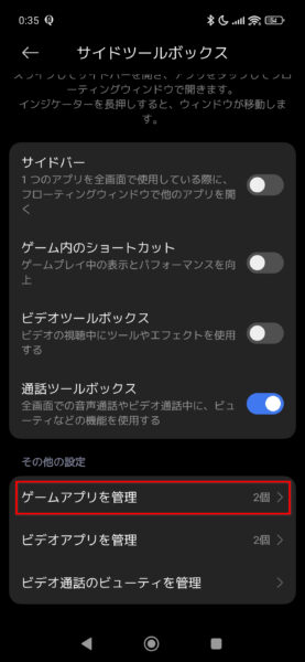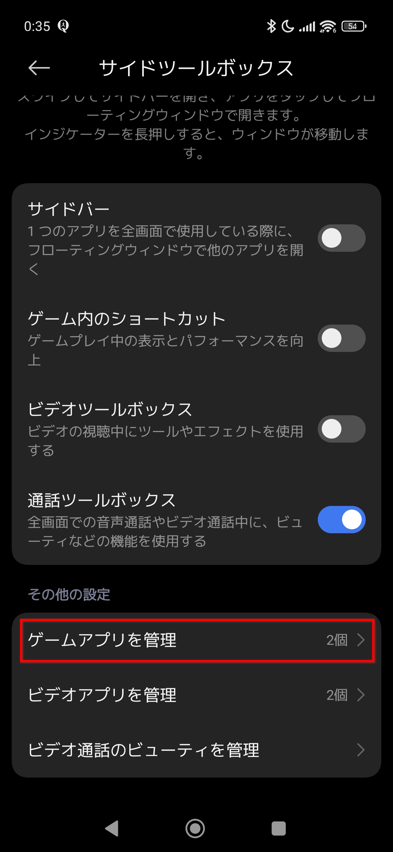 下から 3 番目にある ゲームアプリを管理 をタップする。