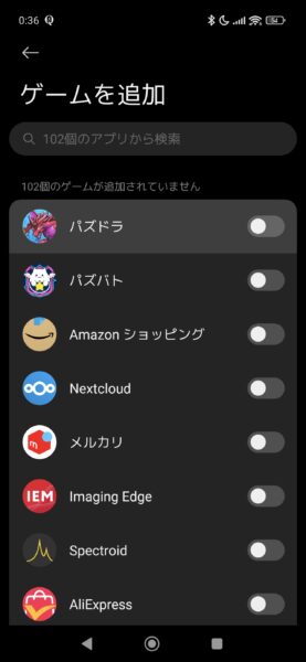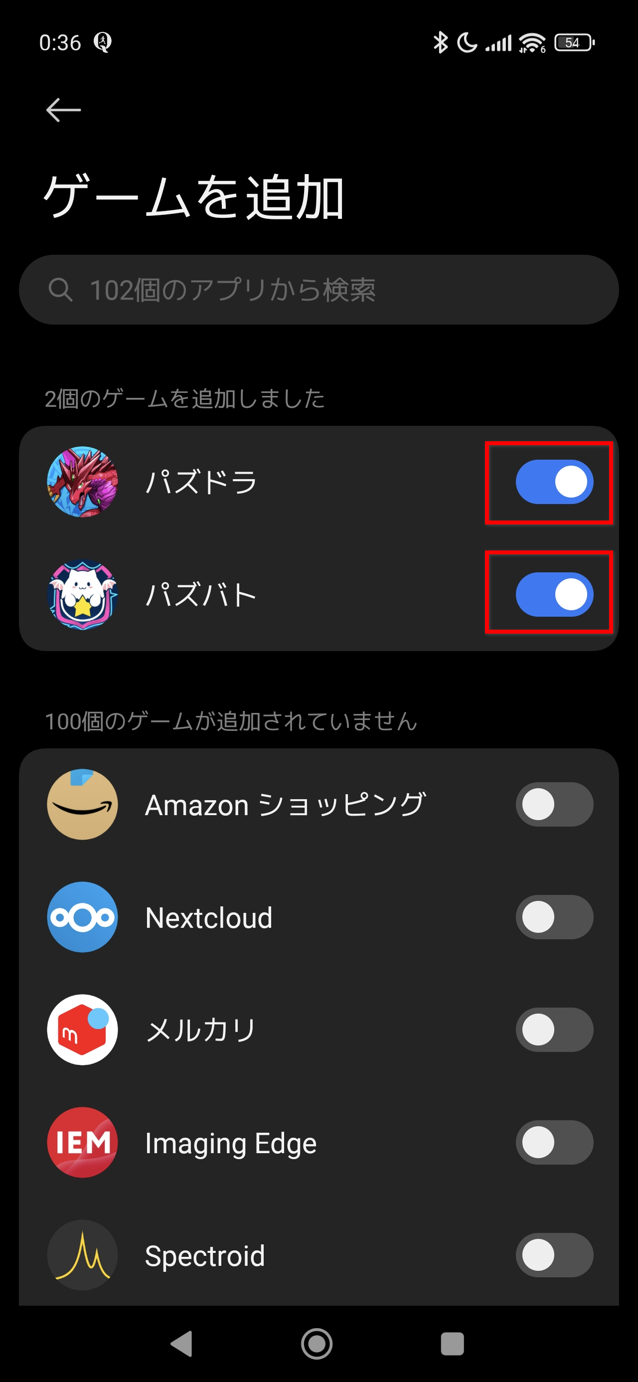 今回はパズドラとパズバトをゲームアプリという認識から除外したいので、右のチェックを OFF にする。