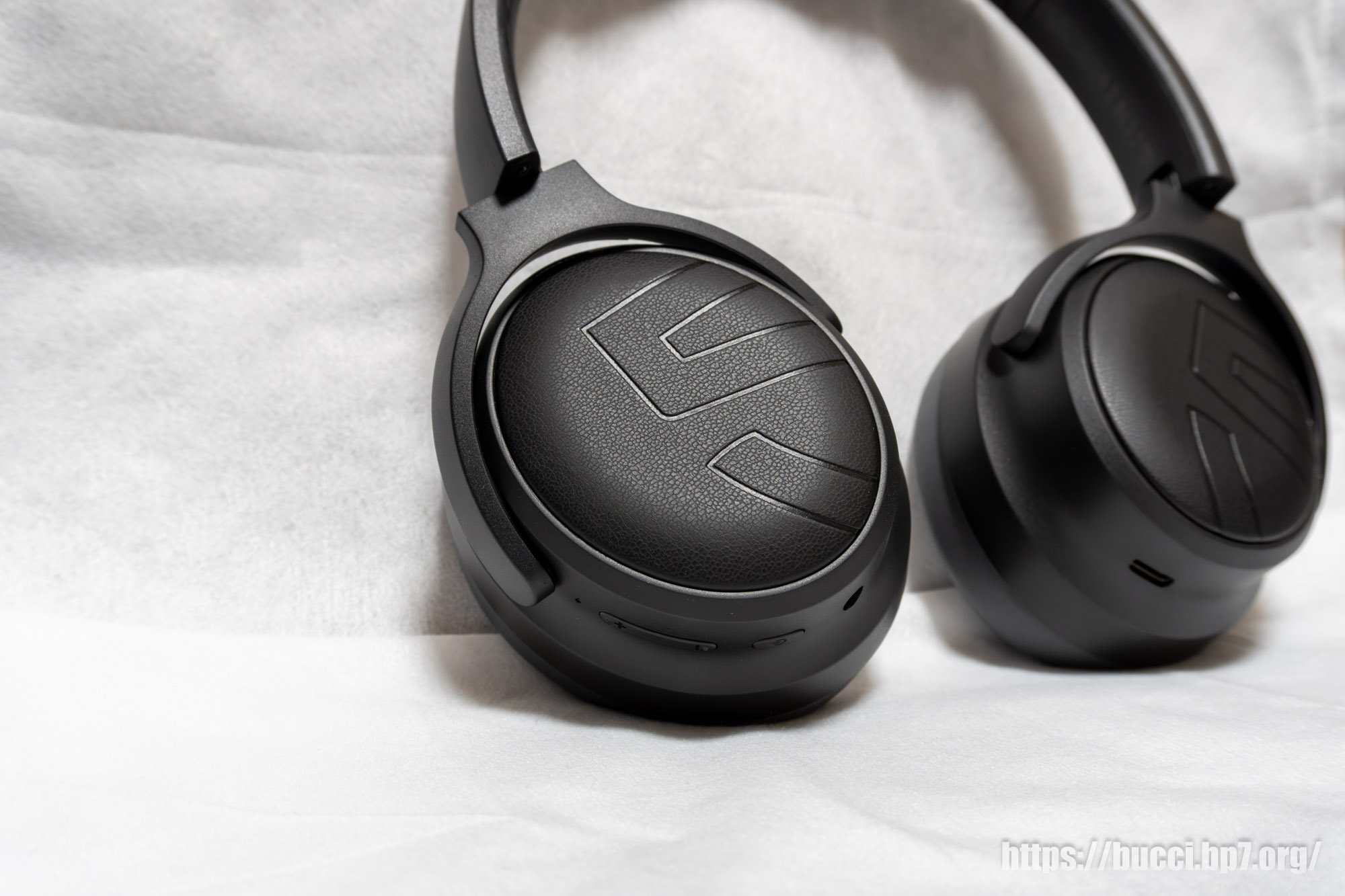 ヘッドホン本体は、マットブラックで統一された落ち着いたデザイン。ハウジング側面の SOUNDPEATS ロゴがアクセントになっている。安っぽさは全く感じられず、ビルドクオリティは非常に高い。
