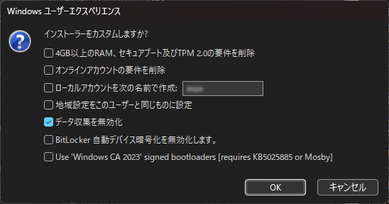 そう言えば Rufus に BitLocker がどうのって項目があったけど、この事なのかなと後から思ってみたり。