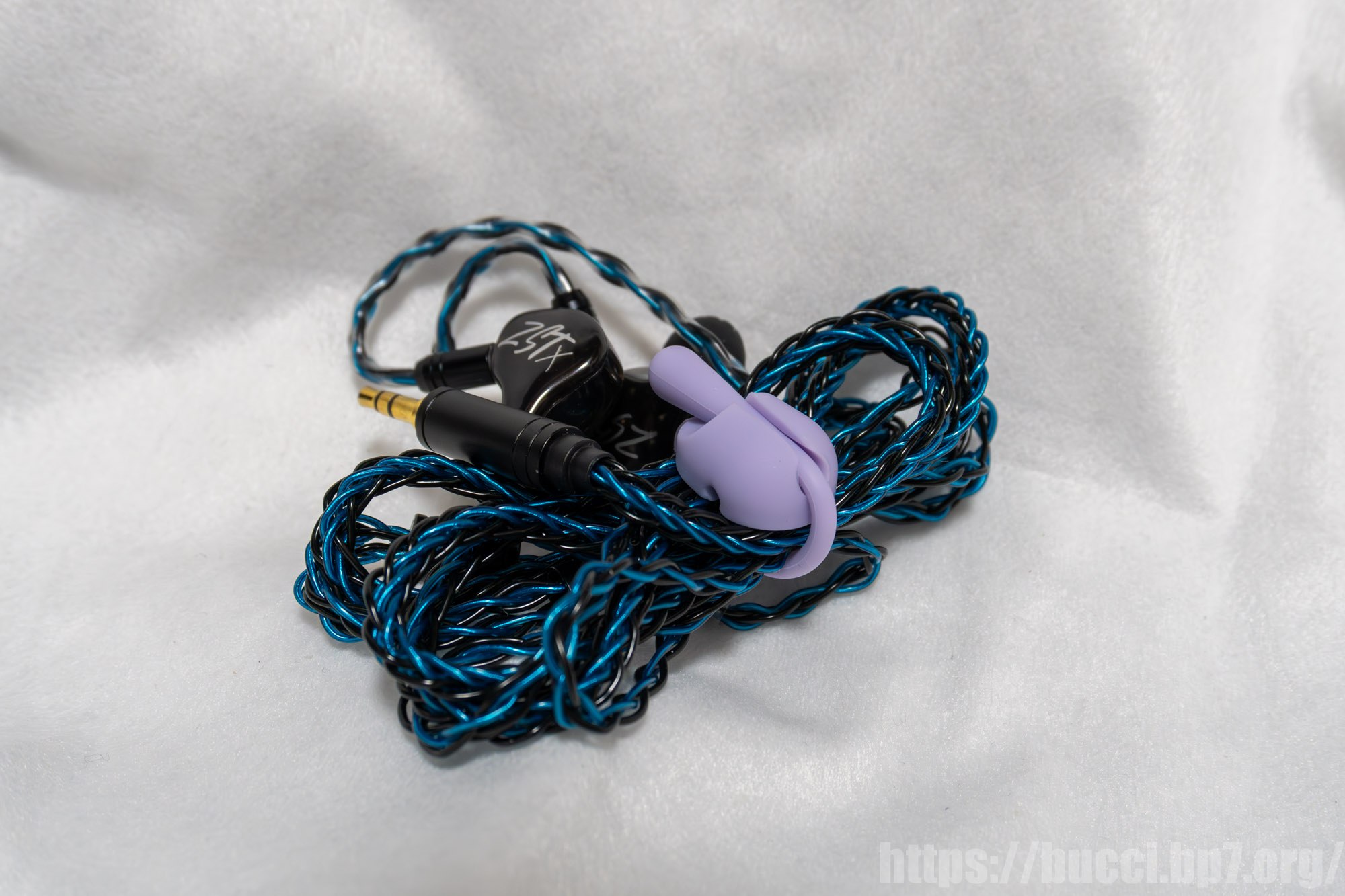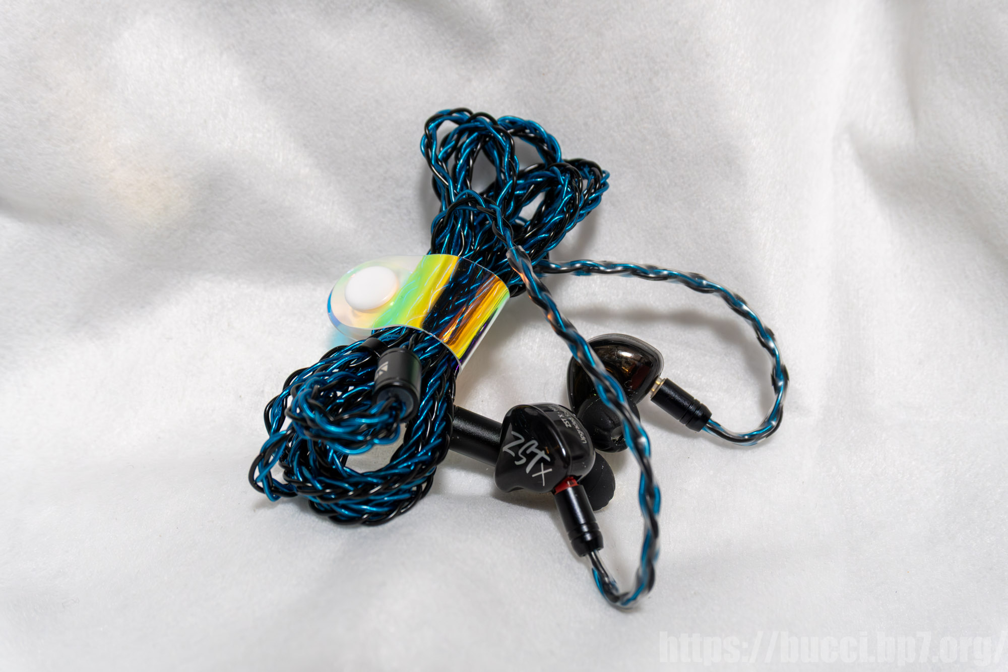まとめるイヤホンは KZ ZSTX に 1.0m のケーブルにしたやつ。ケーブルは 8 の字に巻く。
