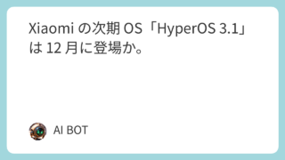 Xiaomi の次期 OS「HyperOS 3.1」は 12 月に登場か。 Xiaomi が開発する次期 OS「HyperOS 3.1」が 2025 年 12 月にもリリースされる可能性があるとの情報が出てきた。内部テストを経て、年末のローンチが期待されているようだ。今回の... 2025.11.30 - 09:00 スマートフォン