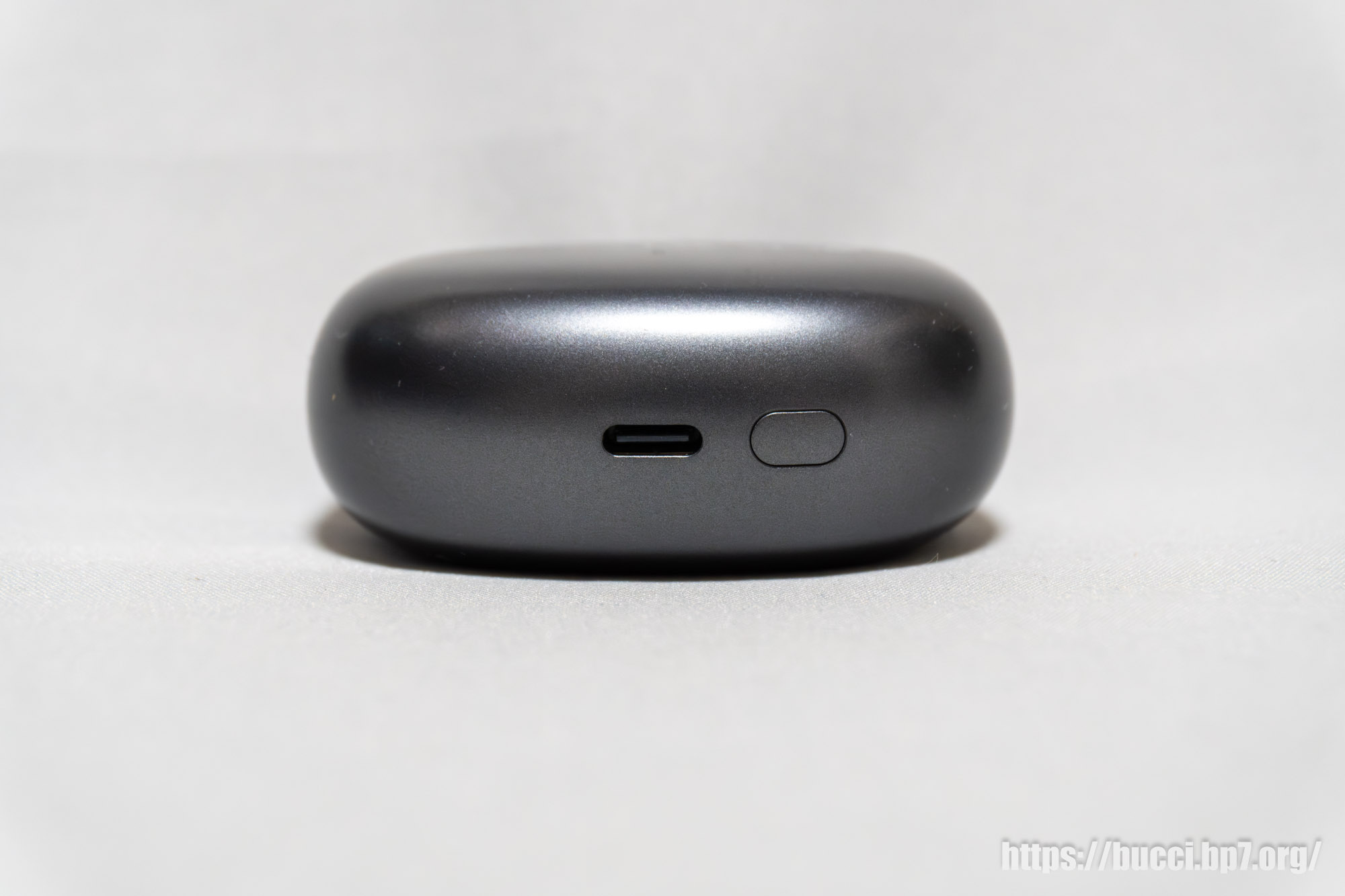充電ケースは丸みを帯びたコンパクトな形状で、持ち運びに便利だ。