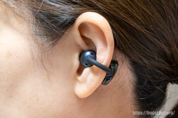 また、イヤーカフ型 (オープン型) のため、構造上、静かな環境では多少の音漏れはあるが、常識的な音量で聴く分には、周囲に迷惑をかけるほどではないだろう。