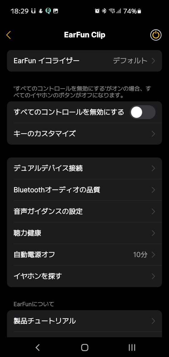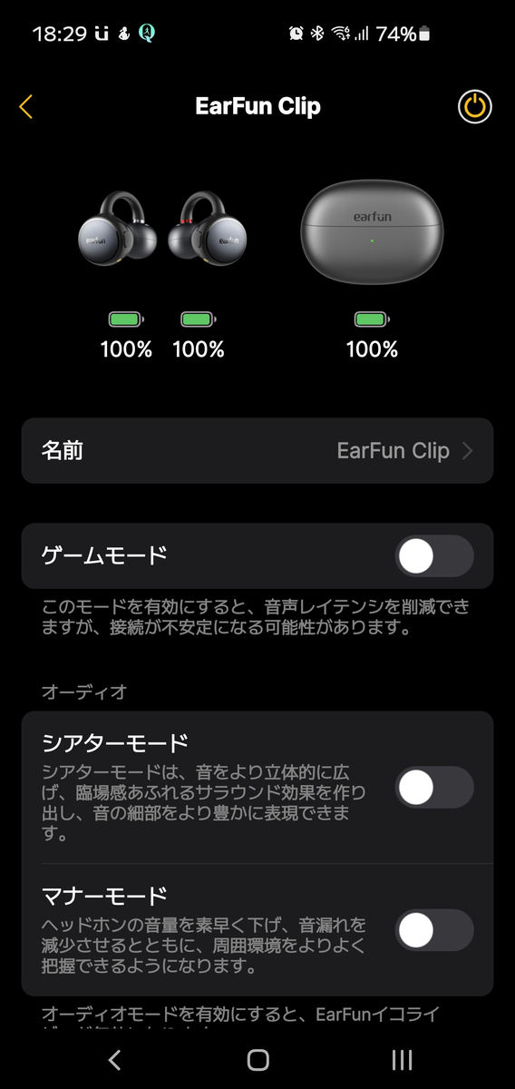 手持ちのスマートフォンに専用アプリ「EarFun Audio」をインストールしておけば、より快適に EarFun Clip を使うことが出来る。