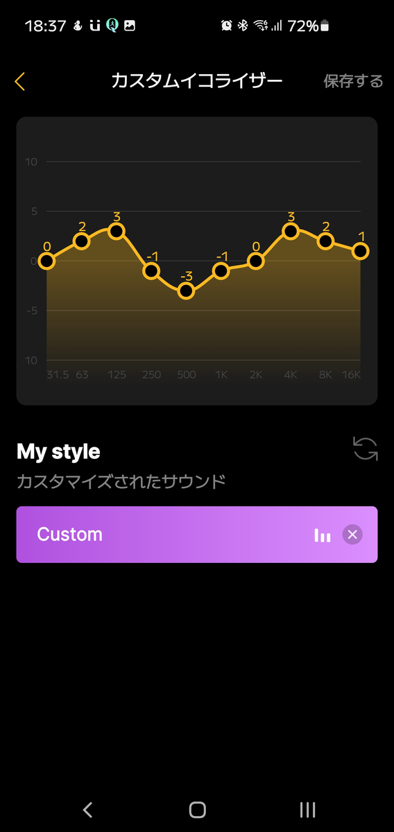 次に好みの音に近づけたらどうなるだろうとカスタム EQ を試した。