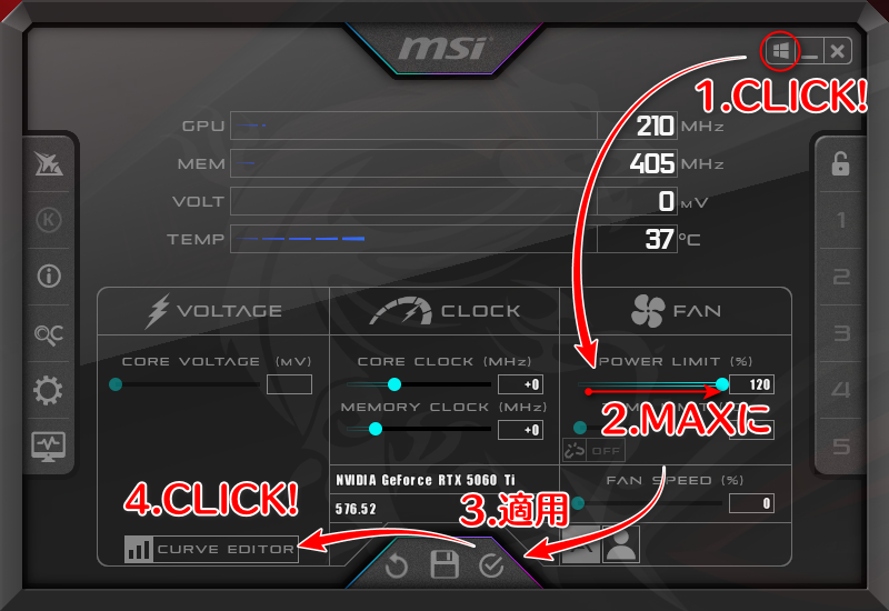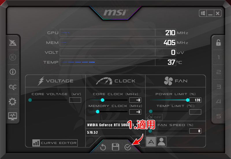 「1.」の操作は設定内容を反映した状態で Afterburner を起動するようにする為の設定。不用ならしなくて良い。