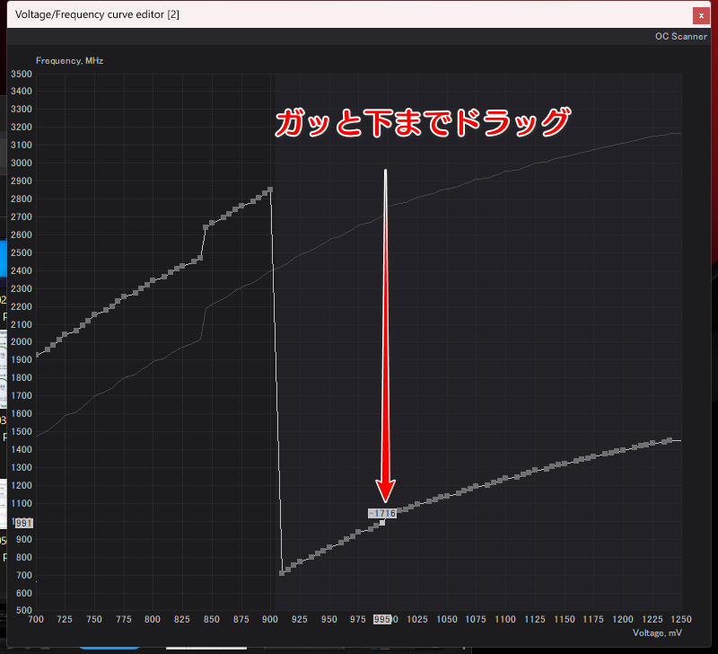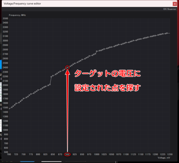 CURVE EDITOR を開いたら最大電圧としたい数値の真上にある点を探す。