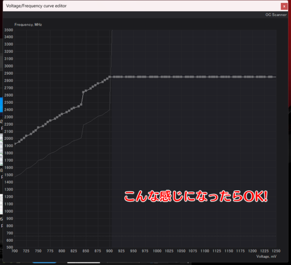 今回は 2,850MHz をターゲットにして大体のところまで持っていった。