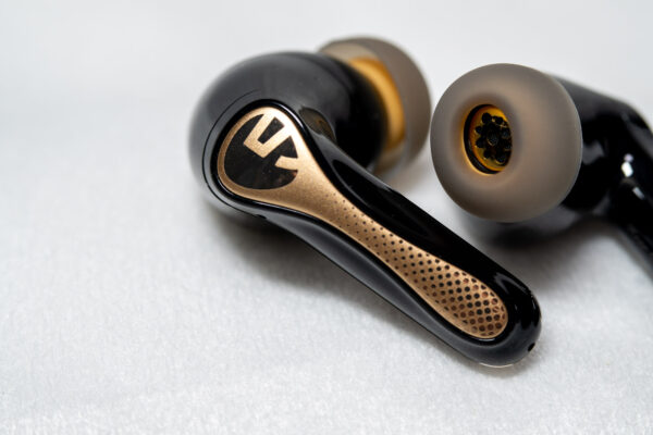 イヤホン本体はブラックを基調に、タッチセンサー部分にブロンズカラーがあしらわれ、洗練された印象を受ける。