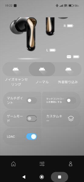 以下のスクリーンショットの通り、LDAC ON/OFF といったコーデックの設定や、各モードの設定が可能だ。