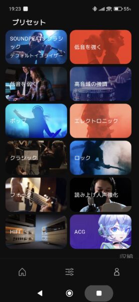 ここで設定したプリセットは Air5 Pro+ に記憶されるので、毎度アプリから設定する必要がない。