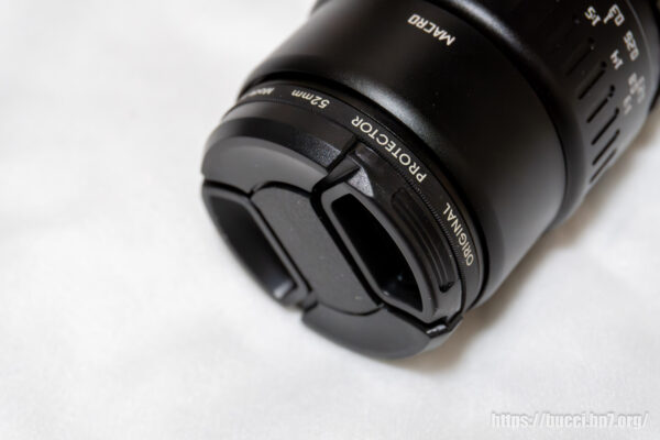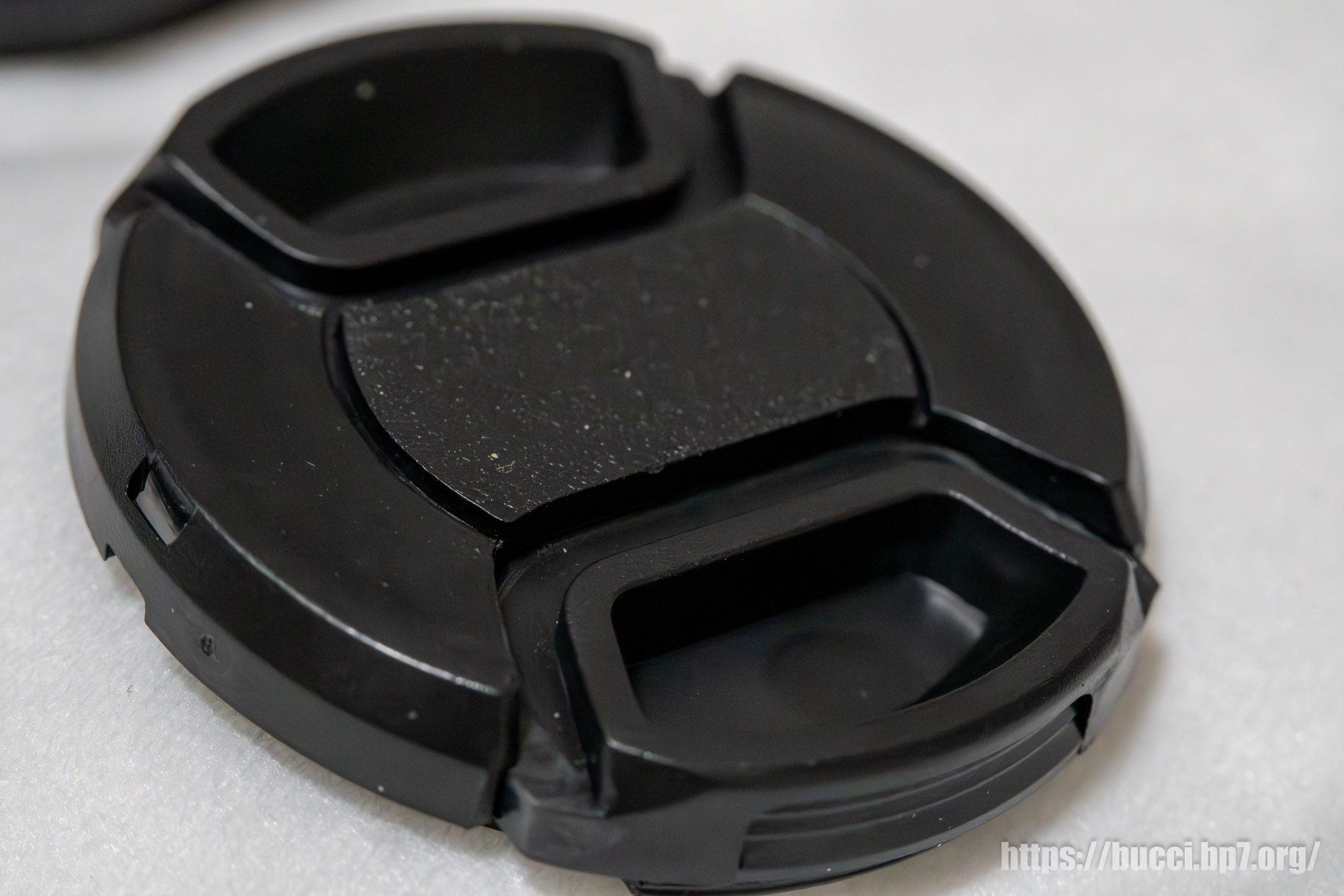 レンズキャップは良くあるグッとつまんで引くだけのやつ。ノーブランドで十分。