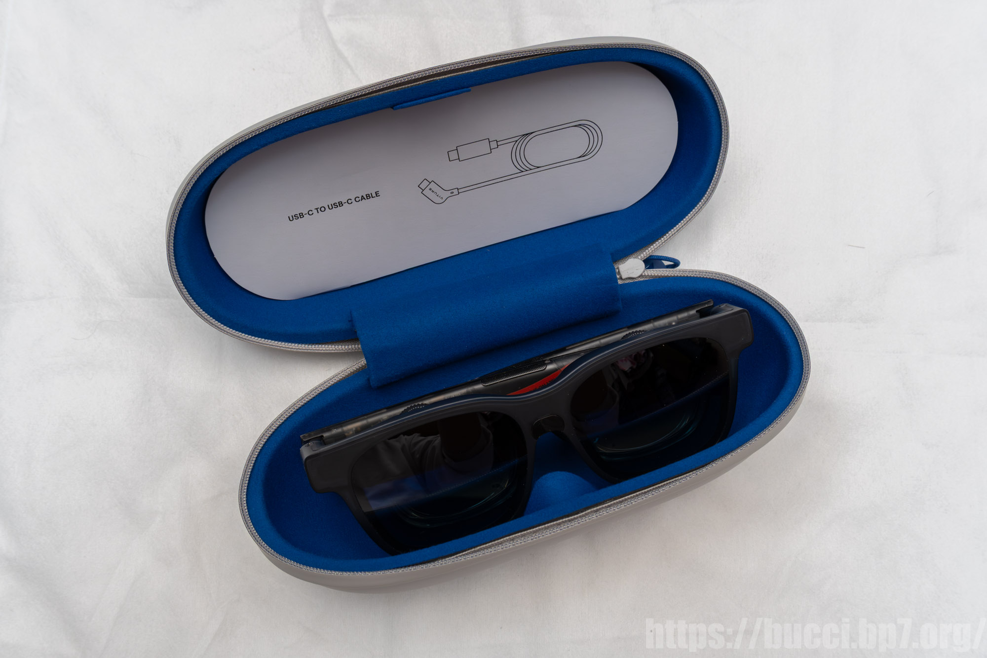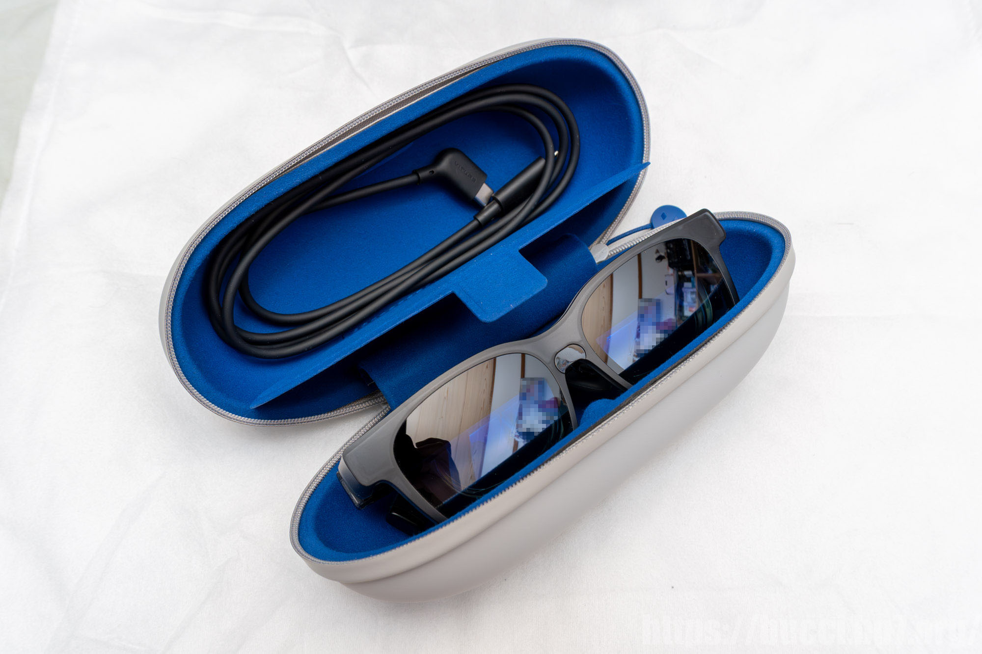 仕切りがあるので、ケーブルによって XR グラスに傷が付くこともない。携帯性抜群。