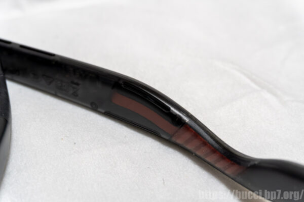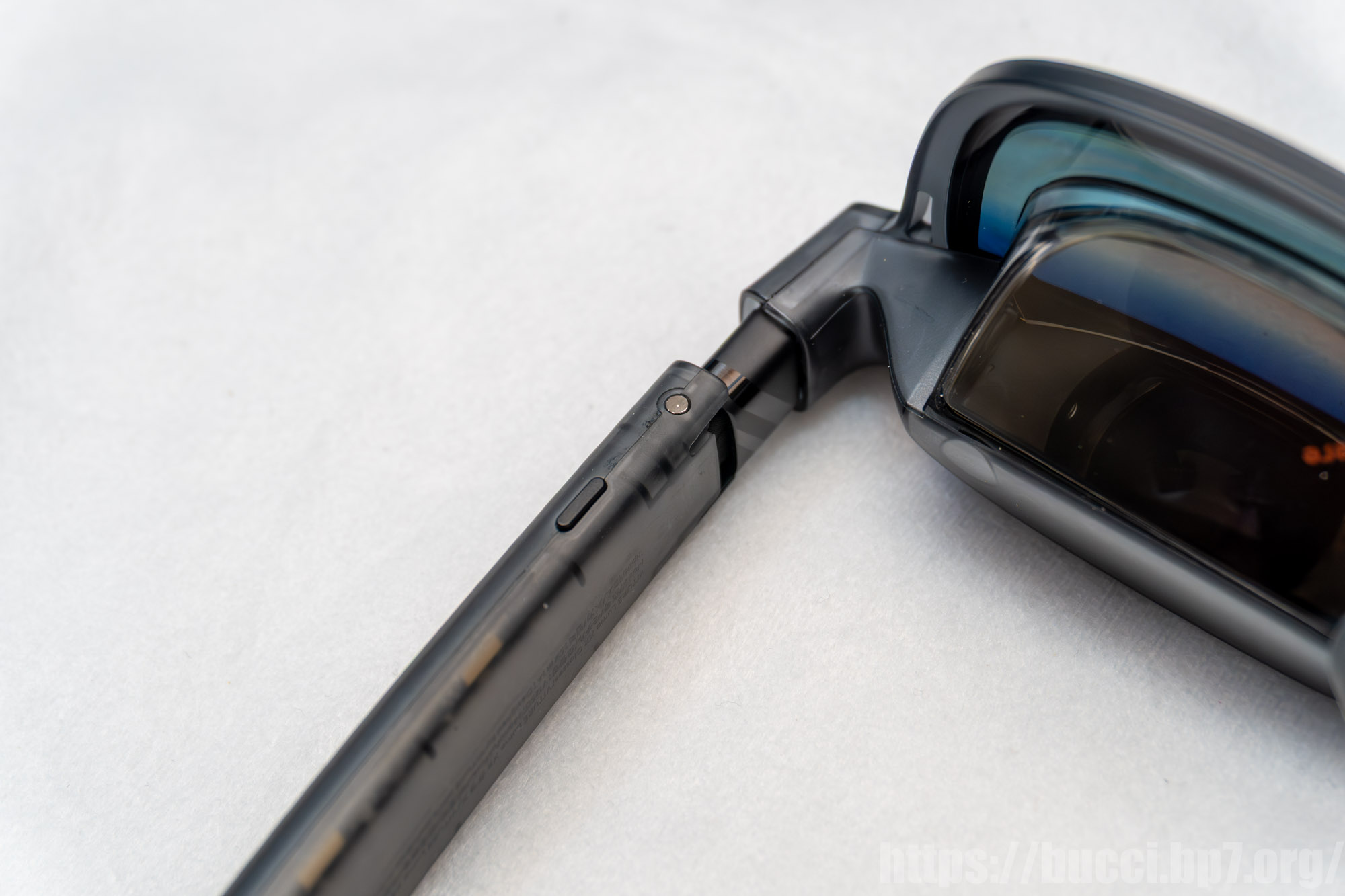 これは、右テンプルにあるボタンを押すだけで、レンズの透過度を瞬時に切り替えられる機能だ。