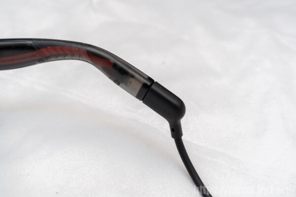 斜めになった端子側を VITURE Luma 本体、右テンプルに装着しよう。